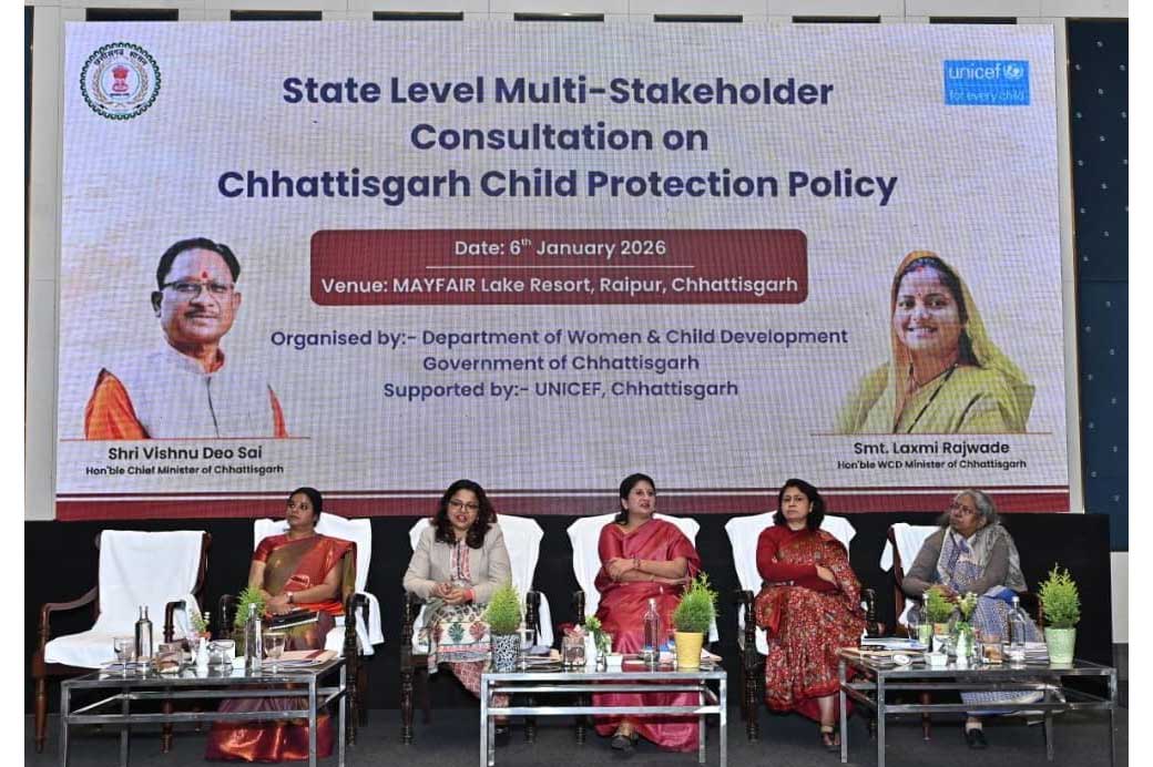 रायपुर, छत्तीसगढ़ में बच्चों के संरक्षण, अधिकारों की सुरक्षा और उनके सर्वांगीण विकास को सुनिश्चित करने के उद्देश्य से आज रायपुर में छत्तीसगढ़ राज्य बाल संरक्षण नीति–2025 के ड्राफ्ट प्रारूप को अंतिम रूप देने हेतु राज्य स्तरीय परामर्श कार्यशाला का आयोजन किया गया। महिला एवं बाल विकास विभाग द्वारा यूनिसेफ (UNICEF) के सहयोग से आयोजित यह कार्यशाला एक सुदृढ़, समन्वित एवं अधिकार-आधारित बाल संरक्षण तंत्र विकसित करने की दिशा में महत्वपूर्ण कदम रही।