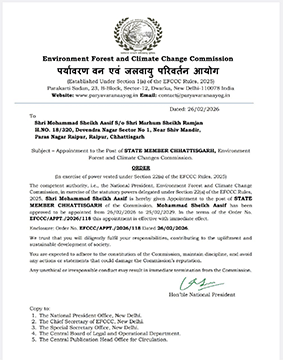 वरिष्ठ भाजपा यूवा नेता देवेंद्र नगर पारस नगर निवासी शेख़ आसिफ पर्यावरण वन एवं जलवायु परिवर्तन आयोग में छत्तीसगढ़ प्रदेश स्टेट के सदस्य बनाया गया वहीं शेख़ आसिफ ने अपने सभी वरिष्ठों का शुक्रिया आभार व्यक्त किया.